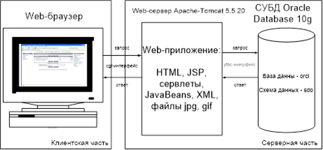 Используемая трехзвенная архитектура построения приложения «клиент/сервер приложений/сервер БД», делает систему более гибкой и дает возможность заменять звенья.
