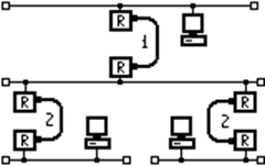 . Повреждение общего кабеля или любого из двух терминаторов приводит к выходу из строя участка сети между этими терминаторами (сегмента сети). Отключение любого из подключенных устройств на работу сети никакого влияния не оказывает.