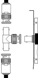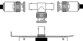 Наденьте на разъем, торчащий из платы (мама), Т-коннектор (папа) и поверните по часовой стрелке байонет, чтобы закрепить разъем.