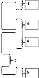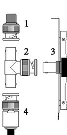 1-сетевая карта (адаптер), 2 -Т-коннектор, 3 - разъем кабеля, 4 - терминатор