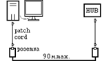 расширить сеть даже до трех компьютеров. Впрочем, устройство это не очень дорогое. Максимальное расстояние компьютер-компьютер или компьютер-хаб 100 метров.