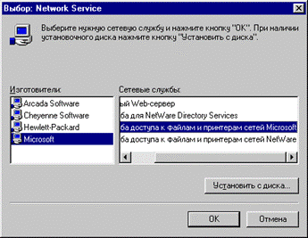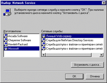 | Если вы хотите добавить еще и доступ к вашему компьютеру по http (или www), то еще раз зайдите в окно "Выбор: Network Service" и укажите "Microsoft", "Личный Web-сервер". |