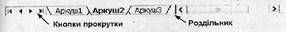 Примітка. При прокручуванні ярличків за допомогою описаних кнопок не відбувається зміна активного робочого аркуша книги.