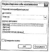 Примітка. При переміщенні аркушів або при копіюванні в іншу книгу треба бути обережним, тому що ця процедура може спричинити появу неточностей в обчисленнях або діаграмах, що використовують посилання надані цих аркушів.