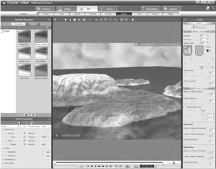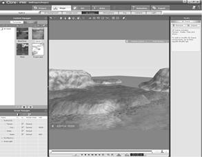 После небольшого ознакомления с программой переходим к созданию видео. Заходим на вкладку Stage (Этап) - 3dScene (3d сцены). В Content manager (права менеджера) видим уже несколько готовых сцен. Выбираем сцену каньон и эта сцена появится в трехмерной сцене. Теперь зайдем в Atmosphere (Атмосфера) и выберем атмосферу «солнечно». Открываем вкладку Light(Свет) и выберем Directional (Направленный). Теперь в Modify (Изменения) настраиваем свет так, чтобы свет падал на ту область, где будет происходить какое-то действие. После того как свет настроили переходим на вкладку Set (Набор) - Water (Воды) и выбираем воду «легкие волны». В изменениях регулируем размер волны и скорость течения волн. Также можно настроить отражение и преломление. Дальше открываем вкладку Sky (Небо) и выбираем небо, которое больше всего подходит к нашему пейзажу. Так же вместо неба можно поставить анимационное видео, для этого надо зайти в Video (Видео) и выбрать то, которое больше всего понравиться, и подойдет к пейзажу, например «диффузные воды». Можно сказать, что половина видео готова.