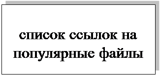Дизайн главной страницы (рисунок 2.2) содержит: вверху название проекта, в центре – список ссылок на популярные файлы, слева – поле основного меню.