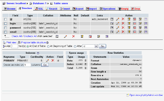 Часть администрирования заключается в создании таблиц БД после установки сайта на сервере, в просмотре текущих файлов всех пользователей, в разрешении каждому пользователю размещать на сайте свои файлы и данные.
