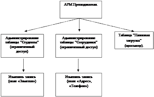 Разработка структуры БД, проектирование АРМ-ов. Реализация модулей “Зав. лаб" (АРМ заведующего лабораториями), “Методист" (АРМ методиста кафедры), “Секретарь” (АРМ секретаря кафедры), “Преподаватель” (АРМ преподавателей кафедры) в виде готового ПО.