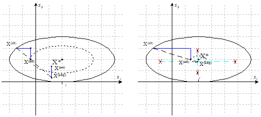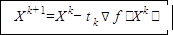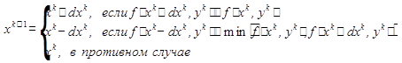 - направлении антиградиента функции, построенном в текущей точке, но условия вычисления шага позволяют определить наилучшее положение точки
