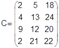 2. Осуществим приведение матрицы С по строкам и столбцам образуя приведенную матрицу Сk .