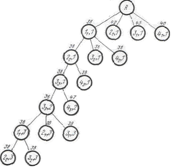 9. Полученная усеченная матрица на некотором шаге ветвления становится размерности 2х2 и содержит, очевидно, лишь две допустимые пары городов. Эти пары являются замыкающими для некоторого маршрута без петель.
