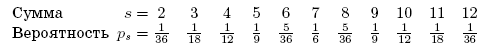 В предыдущем примере имелось 11 возможных исходов при каждом бросании костей, так что k=11. [Формулы (4) и (6) различаются только нумерацией: в одном случае она производится от 2 до 12, а в другом от 1 до k.]