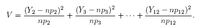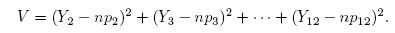 Определенную таким образом величину V называют статистикой “хи-квадрат", соответствующей значениям Y2 , …, Y12 полученным в эксперименте.