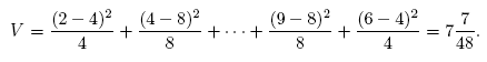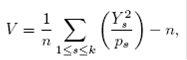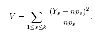 В статистику V все квадраты разностей входят с равным весом, хотя (Y7 - np7 ) 2 , например, вероятно, будет намного больше, чем (Y2 - np2 ) 2 , так как s=7 встречается в шесть раз чаще, чем s=2. Оказывается, что в "правильную" статистику, или по крайней мере такую, для которой доказано, что она наиболее значима, член (Y7 - np7 ) 2 входит с множителем, который в шесть раз меньше множителя при (Y2 - np2 ) 2 Таким образом, следует заменить~ (3) на следующую формулу:
