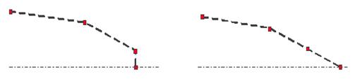 Соединив три линии в одну, получим слом. В отличие от обычных линий контрольной сетки, слом проходит через те же координаты на поверхности, через которые он проходил на контрольной сетке, т.е. слом полностью повторяет на поверхности своё расположение на контрольной сетке.