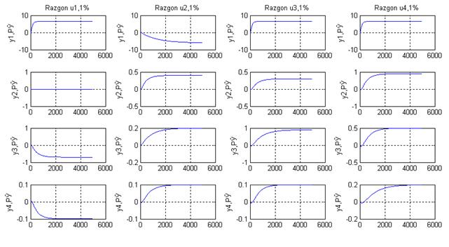 subplot(4,4,4); plot(t,y(:,1));grid;ylabel('y1,РЎ');title('Razgon u4,1%');