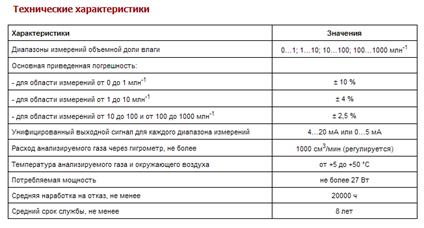 - устройство задания и сигнализации о превышении в анализируемом газе заданного значения объемной доли влаги;
