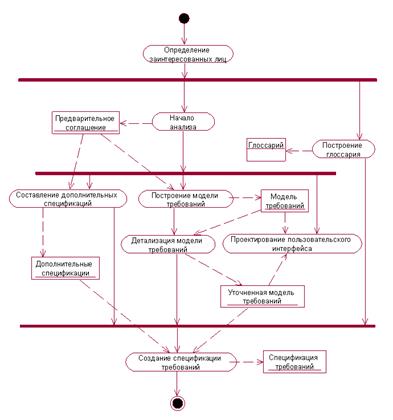 Построение функциональной модели. Модель функционирования описывается с помощью диаграмм ВИ и детализирующих их диаграмм последовательностей и деятельностей. Источником для ее построения является работающая наследуемая система и проводимые с ней эксперименты. На этом этапе особенно эффективно привлечение к работам по реинжинирингу эксперта организации заказчика (см. статью «RUP. Общие сведения»). С его помощью можно быстрее и точнее определить состав актеров наследуемой системы и основные ВИ. Эксперт заказчика может словесно описать, кто использует систему и что она должна делать для пользователей каждого типа. Он может также информировать, с какими другими системами взаимодействует наследуемая ПС, какие работы осуществляются периодически. Все эти сведения будут способствовать более точному пониманию функциональности системы разработчиками.
