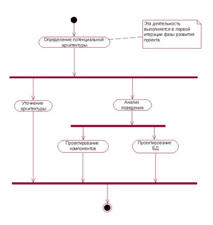 Определение системных архитектур. Работы по описанию архитектур начинаются фактически на начальном этапе, когда определяется состав оборудования и стандартное программное обеспечение (ПО), необходимые для инсталляции и запуска существующей зафиксированной системы. Тем самым фактически определяются архитектуры БД, оборудования и стандартного ПО, телекоммуникаций. Все архитектуры представляются в нотации UML и при необходимости дополняются текстовыми описаниями. Поостренные архитектурные модели в процессе реинжиниринга будут уточняться и дополняться.