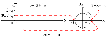 Учитывая вышеизложенное и формулы (1.7), (1.9) можно утверждать, что левая полуплоскость переменного p = d + jw отображается на плоскость единичного круга переменного z = x + jy, правая полуплоскость - на плоскость z за пределами единичного круга.