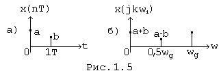 график отсчетов спектра приведен на Рис. 1.5, б, где w1 = wд /N = 0,5wд .