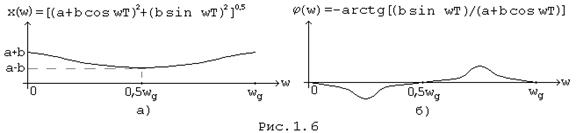 Графики модуля и аргумента спектральной плотности приведены на рисунке 1.6, а, б на интервале частот [0 ; wд ].