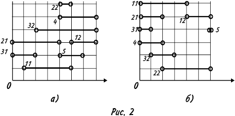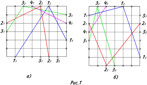 Для ОТ1, представленной на рисунке 1а, m=5, для ОТ2, представленной на рис.1б, m=6, где m - число горизонтальных линий на ОТ.