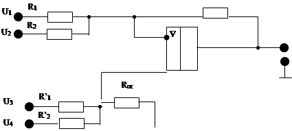 Uвых=U3(R’oc/R’1)+U4(R’oc/R’2)-U1(Roc/R1)-U2(Roc/R2);