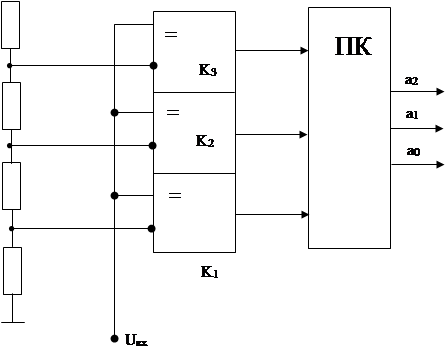3.1. Начертить структурную схему АЦП «напряжение – код» параллельного типа. Объяснить принцип его работы.