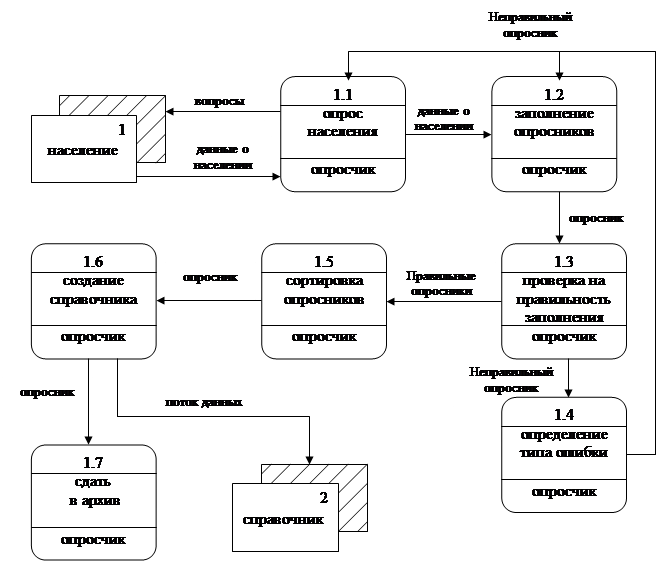 На диаграмме управляющей информацией будем считать опросник или неправильный опросник, а механизмом, т.е. исполнителем операций – опросчика.