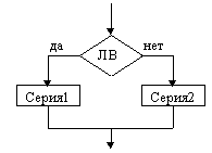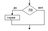 На схемах СЕРИЯ обозначает один или несколько любых операторов; УСЛОВИЕ есть логическое выражение (ЛВ) (если его значение ИСТИНА, переход происходит по ветви ДА, иначе — по НЕТ). На схеме цикла с параметром использованы обозначения: ПЦ — параметр цикла, НЗ — начальное значение параметра цикла, КЗ — конечное значение параметра цикла, Ш — шаг изменения параметра цикла.