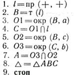 При разработке алгоритмов на построение приведенные примеры указаний будем использовать в качестве образца для записи указаний.