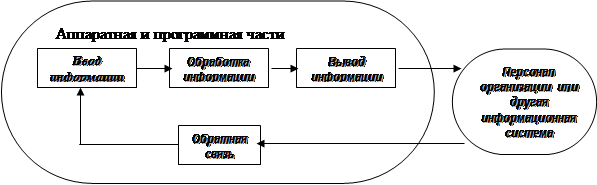 Современное понимание информационной системы предполагает использование в качестве основного технического средства переработки информации персонального компьютера. В крупных организациях наряду с персональным компьютером в состав технической базы информационной системы может входить мэйнфрейм или суперЭВМ- Кроме того, техническое воплощение информационной системы само по себе ничего не будет значить, если не учтена роль человека, для которого предназначена производимая информация и без которого невозможно ее получение и представление.