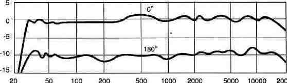 На рис. 1.8 показана зависимость чувствительности микрофона МЭК-2 от частоты для фронтального (0°) и противоположного ему тылового (180°) направлений.