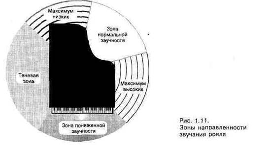 Музыкальные инструменты отличаются и силой, звучания. Пиковые мощности звучания инструментов составляют: 25 Вт для большого барабана, 12 Вт для малого барабана, 6 Вт для тромбона, 0,4 Вт для фортепиано, 0,3 Вт для саксофона, 0,05 Вт для кларнета. Учитывать различия в этих цифрах необходимо для того, чтобы при записи верно передать баланс уровней громкостей инструментов, а также для правильного выбора расстояния L и чувствительности микрофона, исключающего нелинейные искажения, вызванные перегрузкой микрофона и усилительного тракта.
