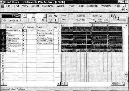 Вы уже знаете, что наиболее совершенные музыкальные редакторы способны привязывать MIDI-события ко времени в различных форматах и стандартах. Cakewalk, например, тоже может работать с SMPTE-кодом. Однако подавляющее большинство звуковых карт не оборудовано соответствующим аппаратным интерфейсом, посредством которого их можно было бы подключать к SMPTE-аппаратуре студии.