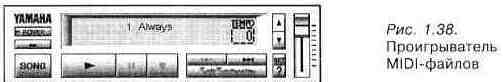 Нельзя не упомянуть о симпатичном проигрывателе MIDI-файлов, поставляемом вместе с виртуальным синтезатором, а также о самих демонстрационных MIDI-файлах, использующих возможности стандарта XG. Вид проигрывателя показан на рис. 1.38.