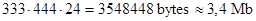 , учитывая, что каждый пиксель занимает 24 байта (что соответствует 16777216 цветам, а именно столько необходимо для качественного отображения фотографий), будет занимать