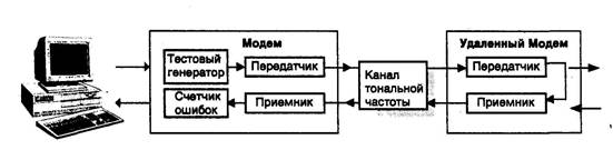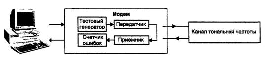 Удаленный модем, передавая определенную последовательность данных и сравнивая ее с принятой, проверяет исправность-телефонного канала, местного и удаленного модемов.