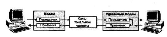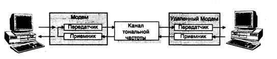 Затем локальный модем посылает эти знаки удаленному модему, который, в свою очередь, возвращает их локальному модему (рис. 12.21).