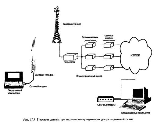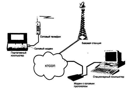 Рис. 11.2. Передача данных через аналоговую сотовую сеть