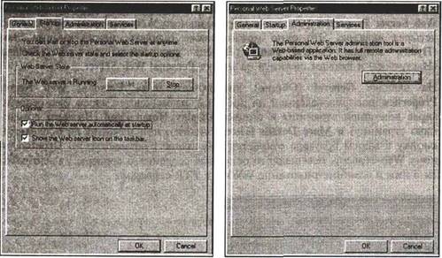 | Рис. 11.3. Диалоговое окно Personal | Рис. 11.4. Диалоговое окно Personal Web Server Properties, вкладка Startup Web Server Properties, вкладка Administration |