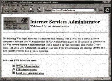 Персональный Web-сервер Microsoft и Персональный Web-сервер Frontpage идеально подходят для работы с Web-сайтами Frontpage. Их лучше всего использовать для тестирования сайтов и в качестве основных серверов сетей intranet небольших организаций.