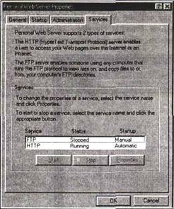 Рис. 11.7. Диалоговое окно Personal Web Server Properties, вкладка Services