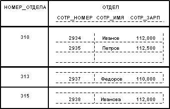 Можно сказать, что здесь мы имеем бинарное отношение, значениями атрибута ОТДЕЛЫ которого являются отношения. Заметим, что исходное отношение СОТРУДНИКИ является нормализованным вариантом отношения ОТДЕЛЫ: