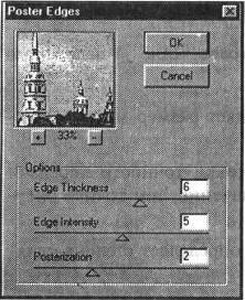В поле Edge Intensity (Интенсивность) в диапазоне от 0 до 10 определяется степень выделенности краев контуров, а в поле Smoothness (Постеризация) в диапазоне от 0 до 6 — количество уровней цвета.