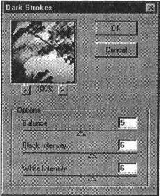 Значение поля Stroke Length (Длина штриха) определяет максимальную длину штриха в диапазоне от 0 до 40, а значение поля Stroke Detail (Детализация) в диапазоне от 1 до 20 — уровень детализации изображения.