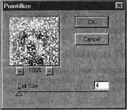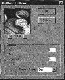 Значение поля Size (Размер) определяет в диапазоне от 1 до 12 размер растровой ячейки, а поля Contrast (Контраст) — уровень контраста в диапазоне от 0 до 50.