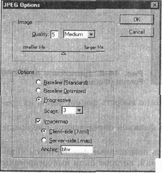 При установке флажка Imagemap (Карта изображения) становятся доступными переключатели, позволяющие оформить документ, пригодный для Web-страниц (или для программ, которые их создают).