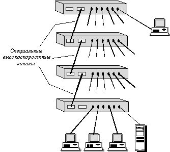 Рис. 4.7. Стек коммутаторов, объединяемых по высокоскоростным каналам